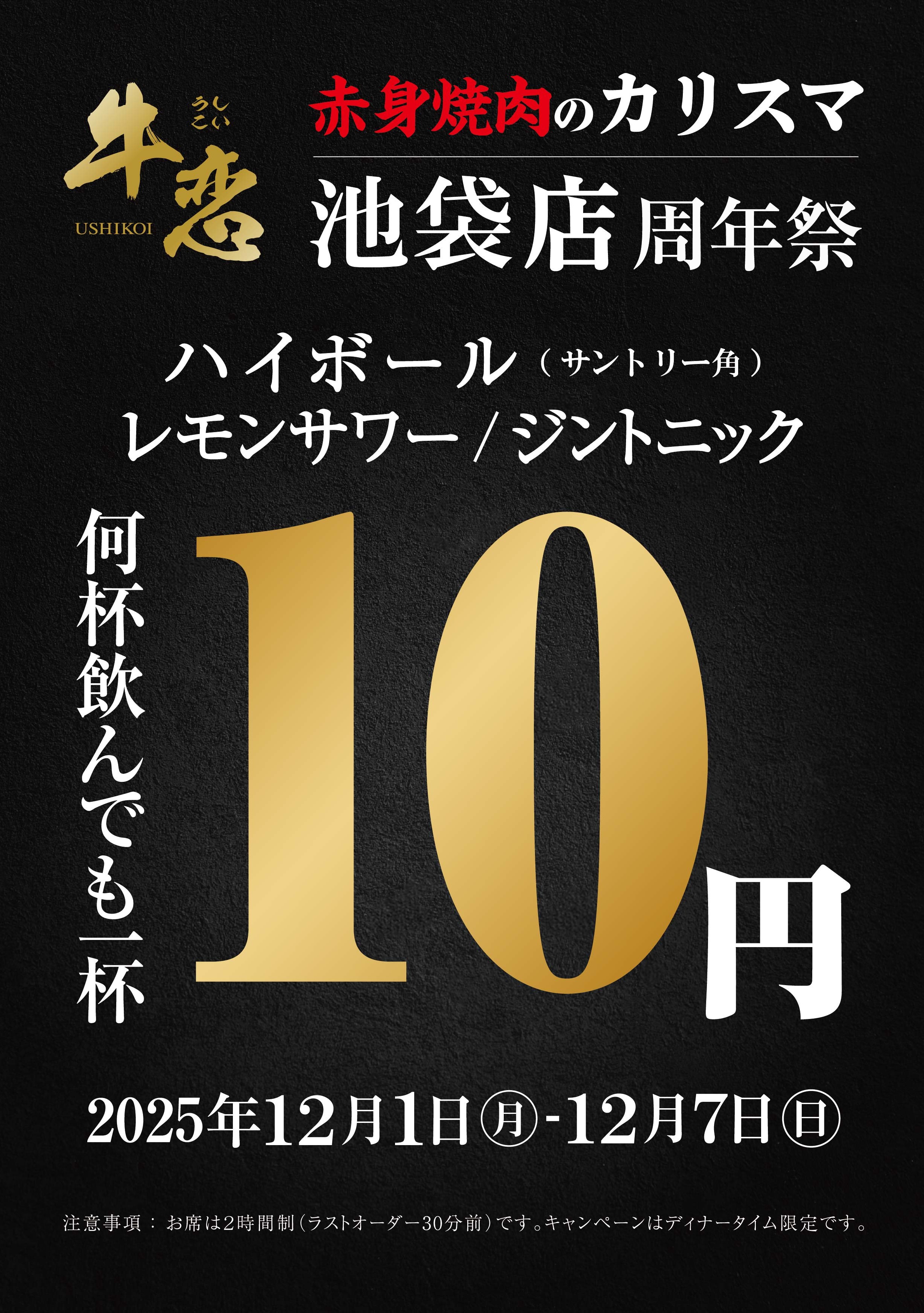 【牛恋10周年記念】すべてのドリンクが0円の“タダ恋”開催決定‼